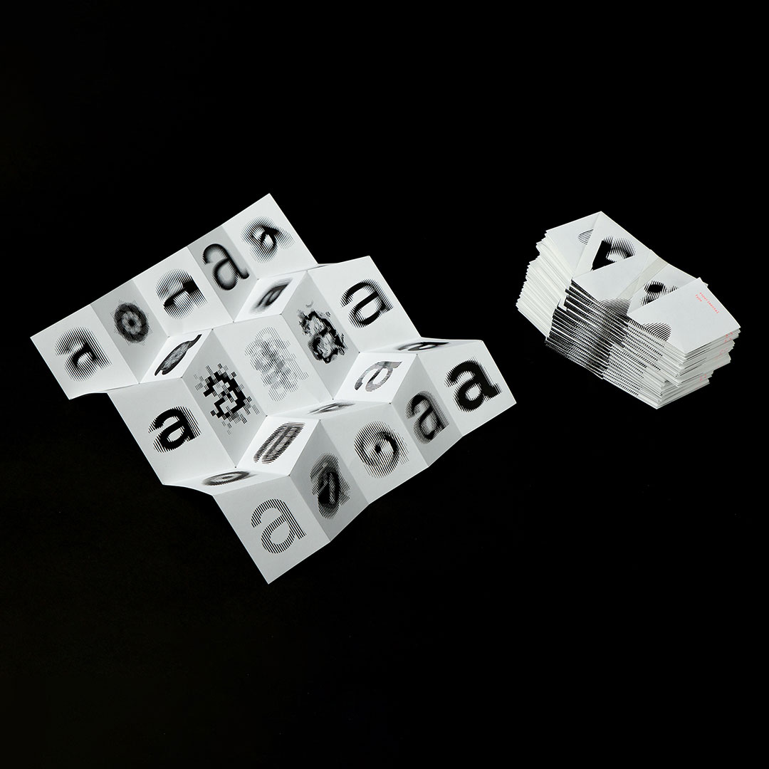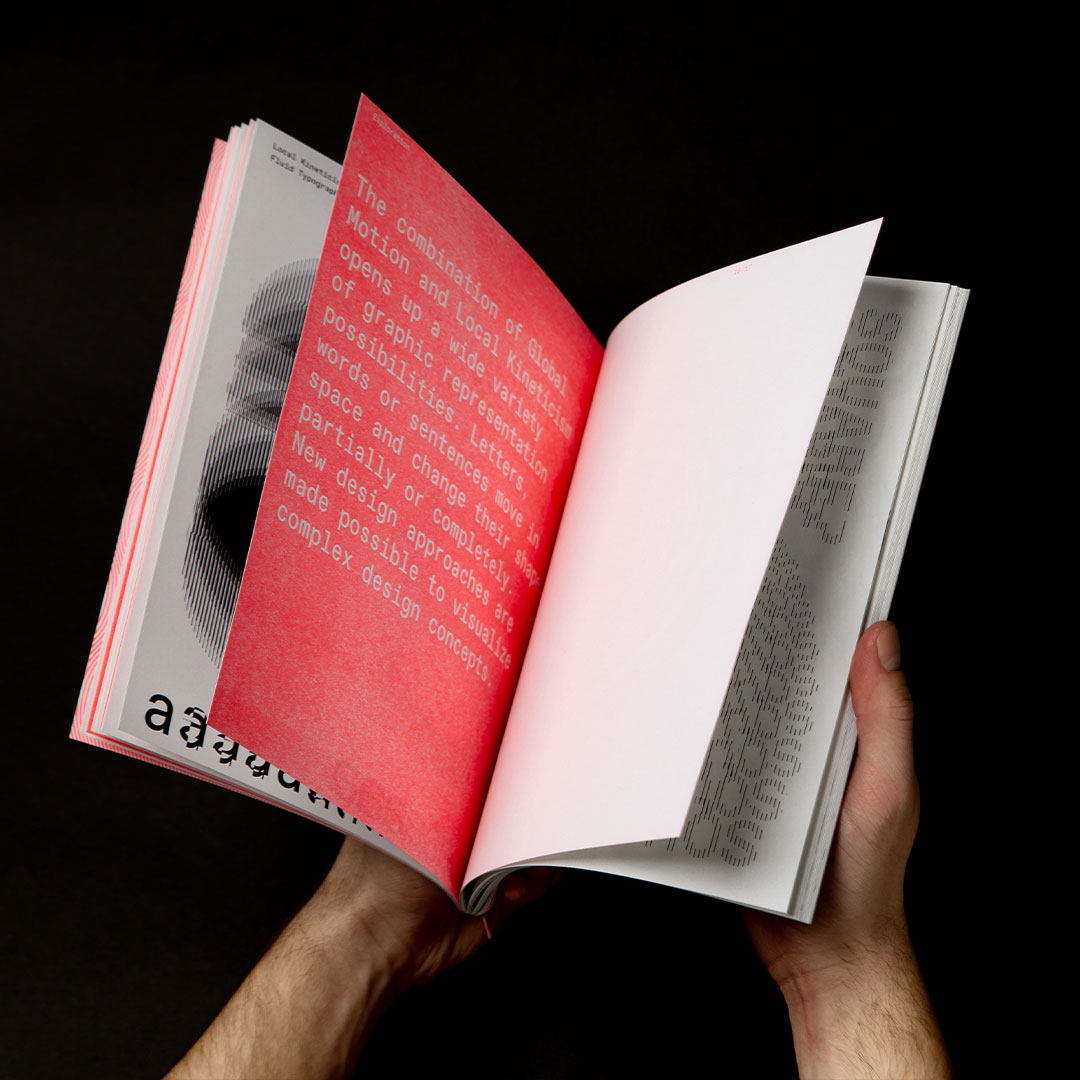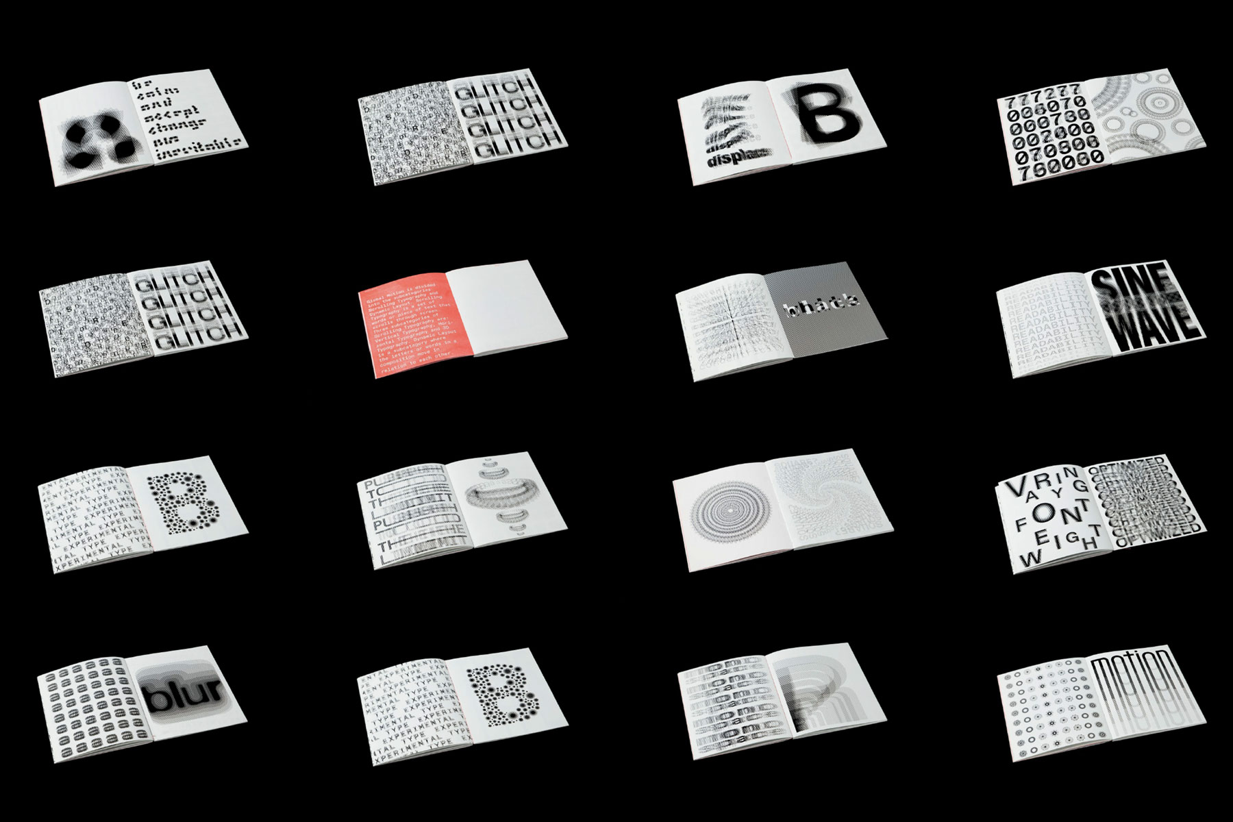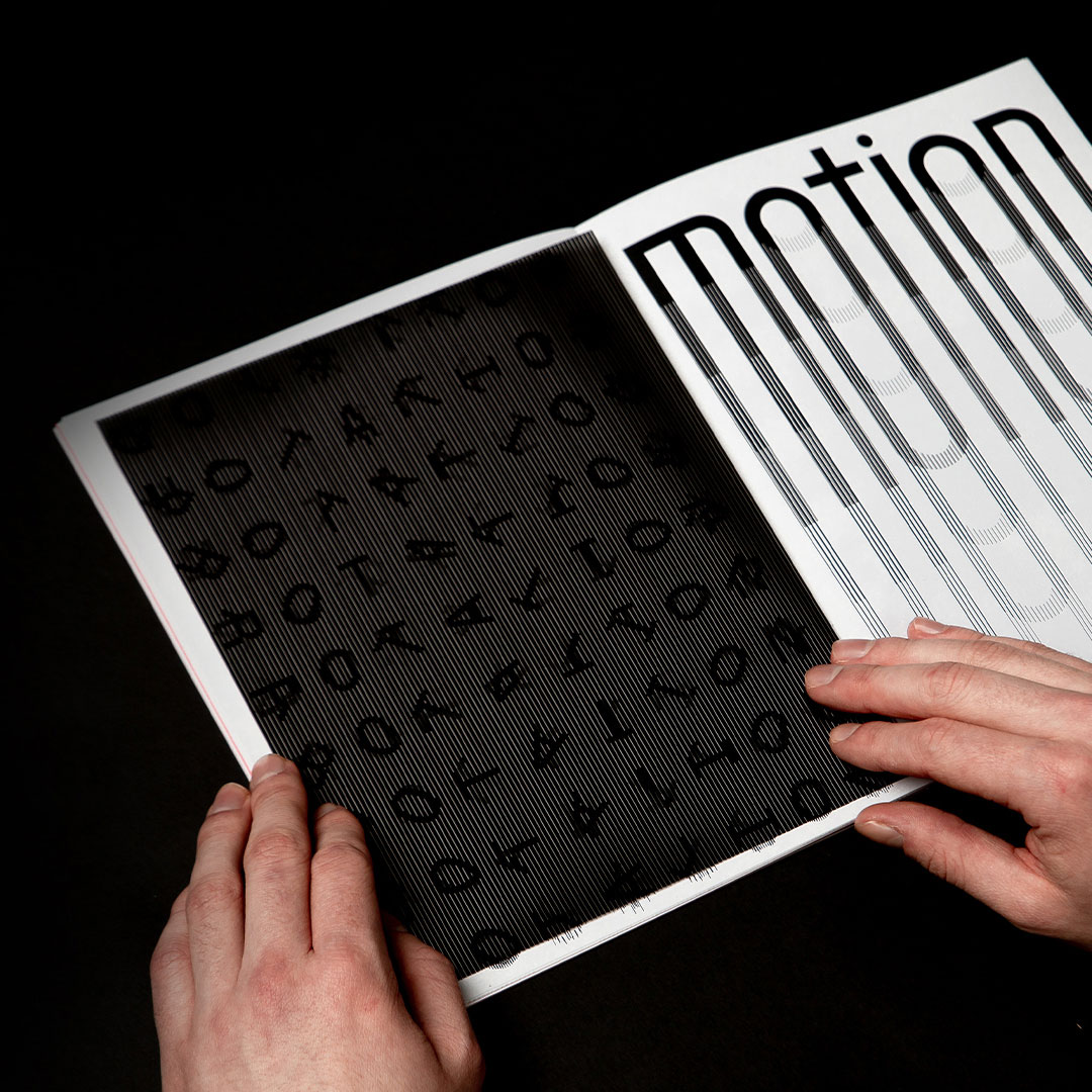 Die Typologie„ »experimental type – an exploration on kinetic typography« beschäftigt sich mit der Sammlung und Exploration von kinetischer Typografie in Form einer Revue. Durch die Nutzung einer optischen Täuschung (Moiré Effekt), wurde eine Möglichkeit gefunden, kinetische Typografie vom digitalen ins analoge Medium zu übersetzen. Sobald sich das obere Raster (Folie) bewegt, werden die einzelnen Frames der Animation nacheinander sichtbar, und diese wird »abgespielt«.