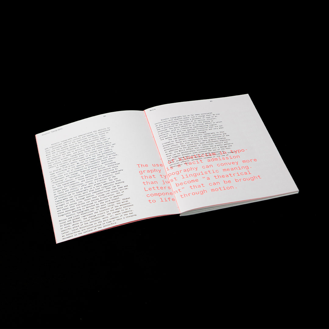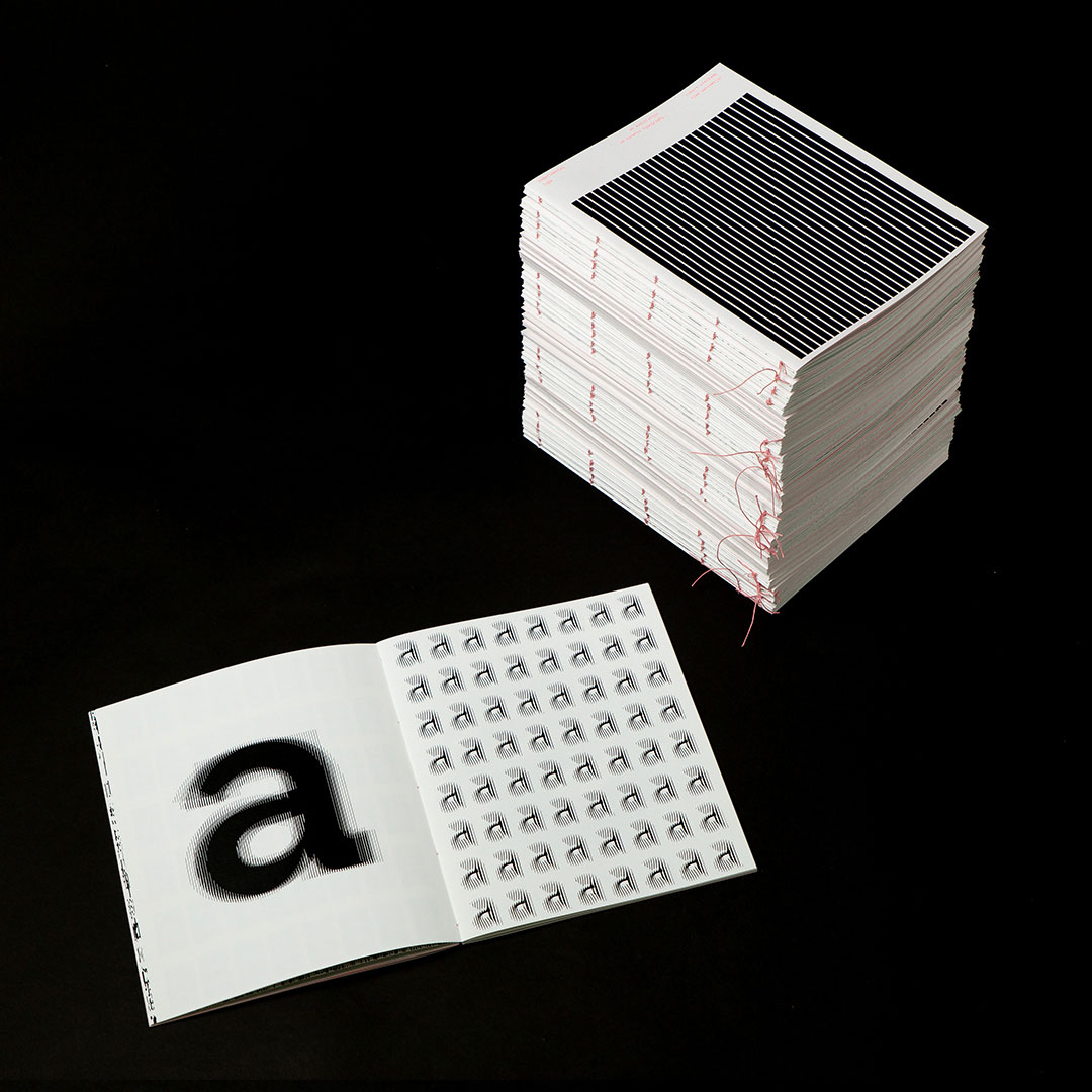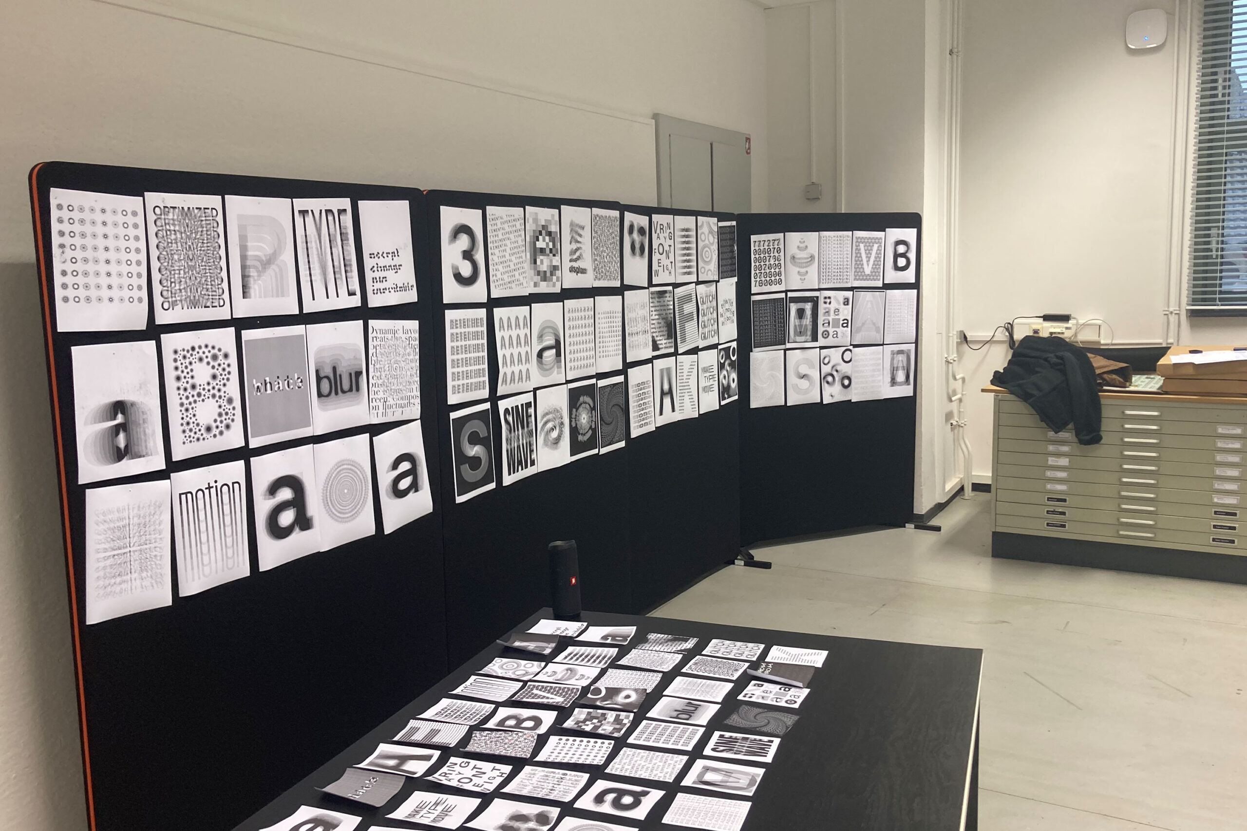 Die Typologie„ »experimental type – an exploration on kinetic typography« beschäftigt sich mit der Sammlung und Exploration von kinetischer Typografie in Form einer Revue. Durch die Nutzung einer optischen Täuschung (Moiré Effekt), wurde eine Möglichkeit gefunden, kinetische Typografie vom digitalen ins analoge Medium zu übersetzen. Sobald sich das obere Raster (Folie) bewegt, werden die einzelnen Frames der Animation nacheinander sichtbar, und diese wird »abgespielt«.