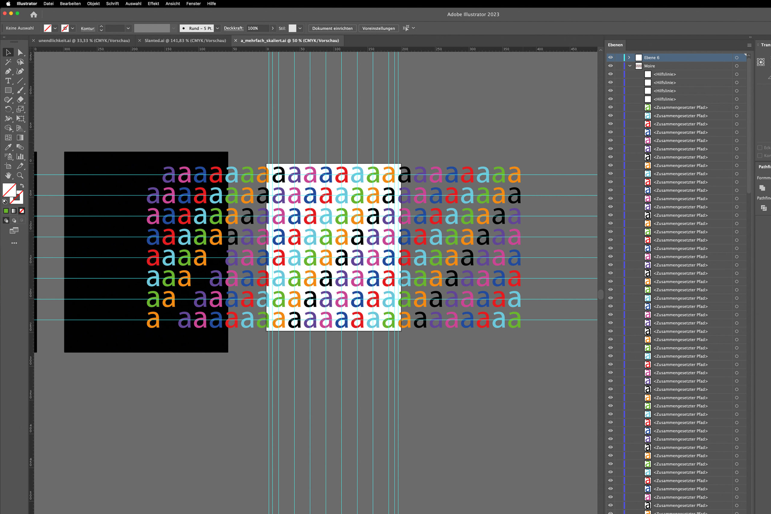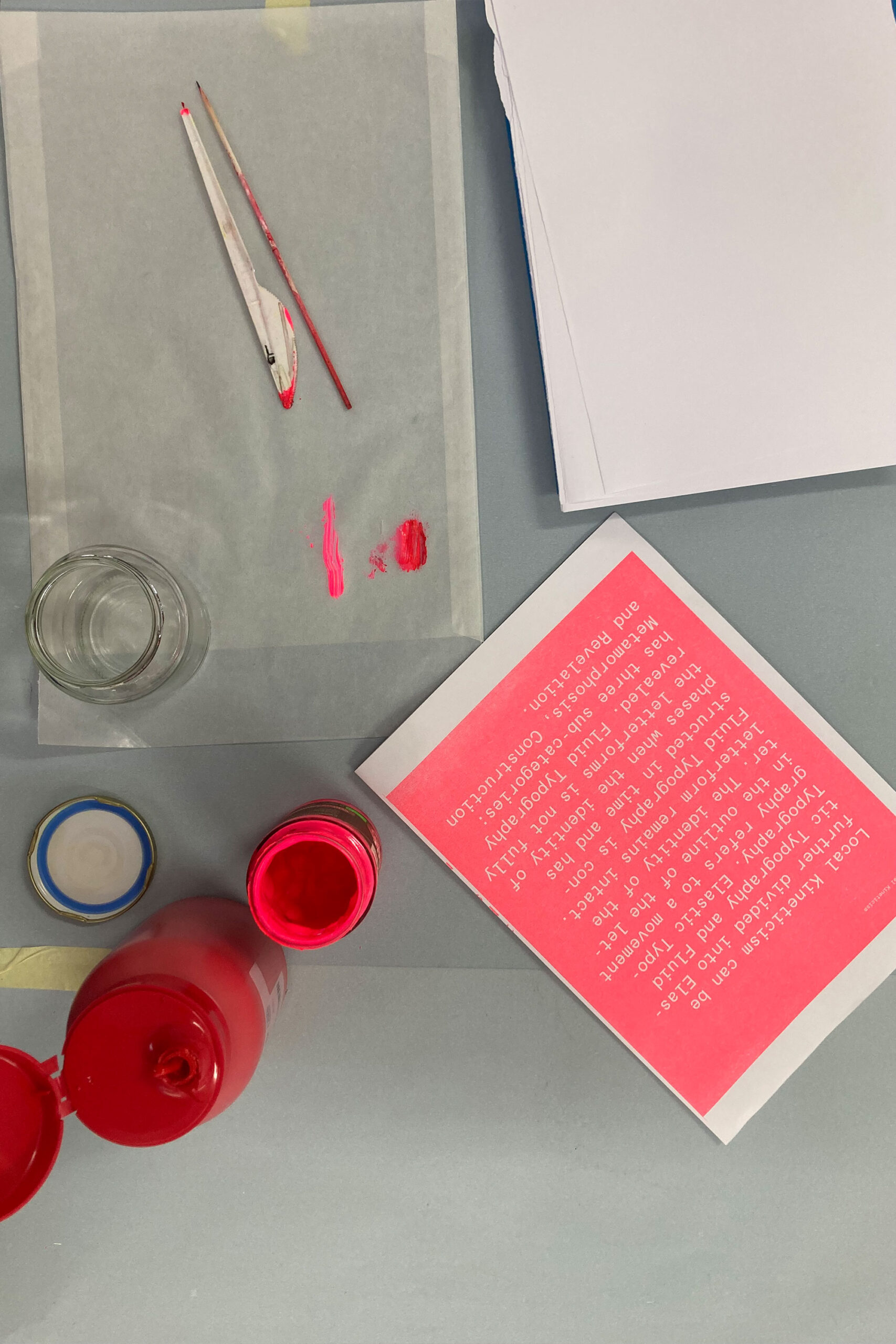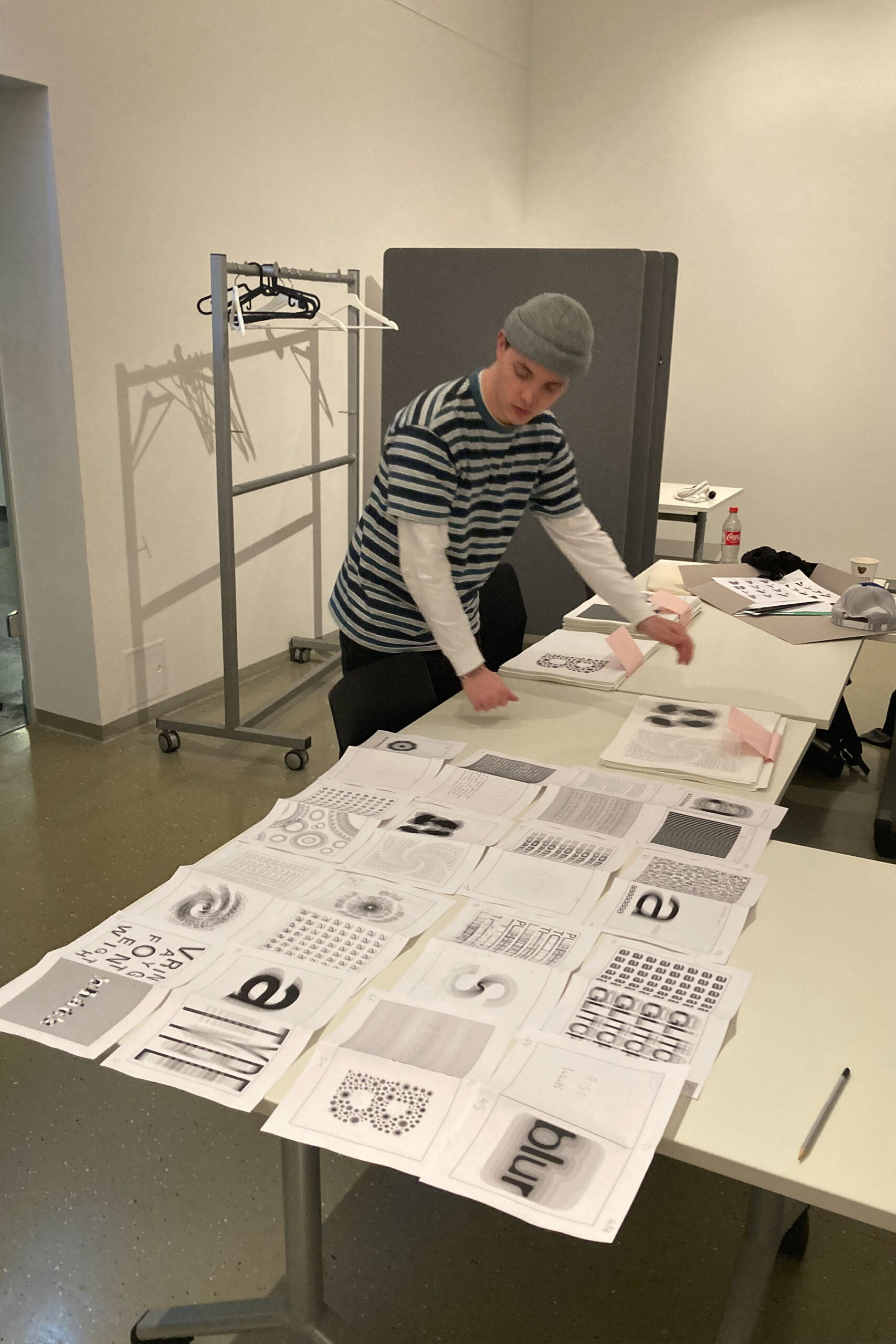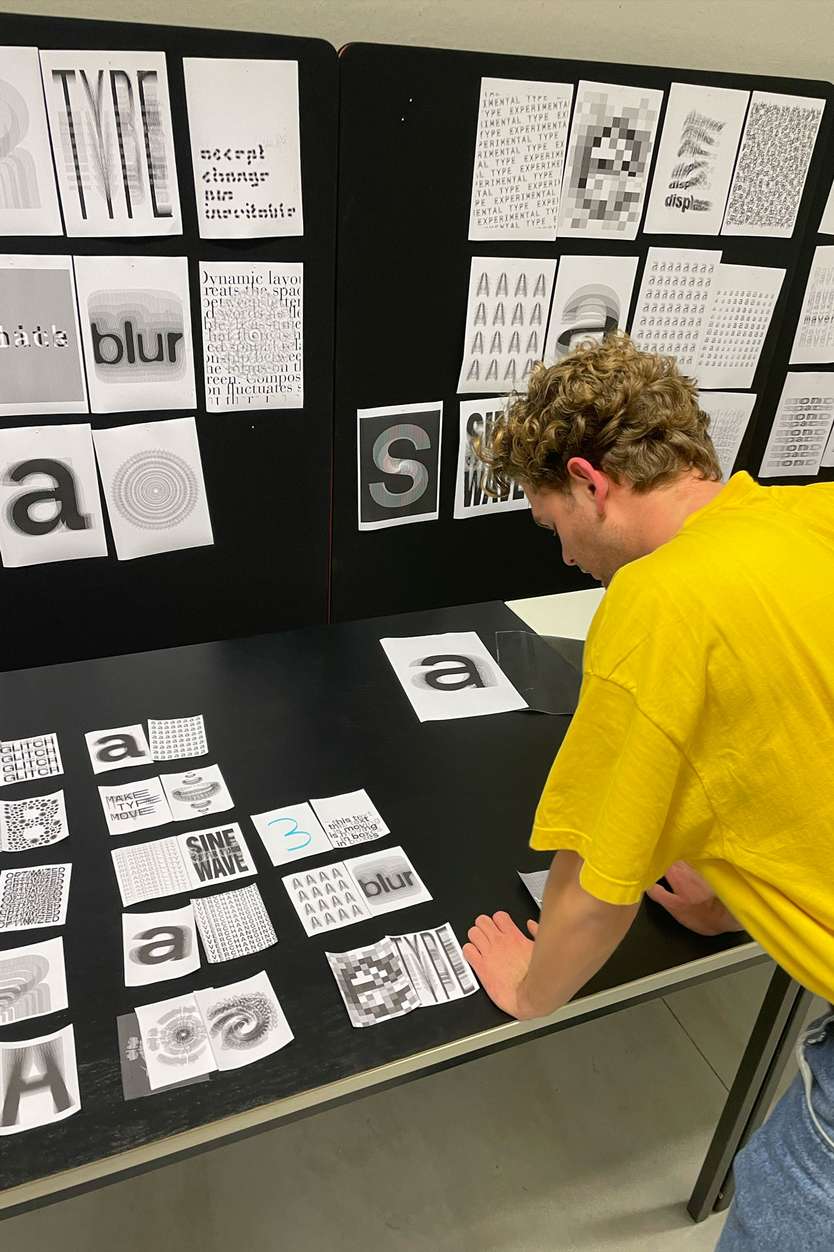 Die Typologie„ »experimental type – an exploration on kinetic typography« beschäftigt sich mit der Sammlung und Exploration von kinetischer Typografie in Form einer Revue. Durch die Nutzung einer optischen Täuschung (Moiré Effekt), wurde eine Möglichkeit gefunden, kinetische Typografie vom digitalen ins analoge Medium zu übersetzen. Sobald sich das obere Raster (Folie) bewegt, werden die einzelnen Frames der Animation nacheinander sichtbar, und diese wird »abgespielt«.